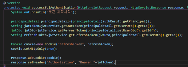 refresh라는 이름으로 내용을 담는 쿠키 생성