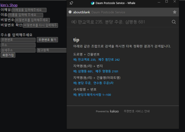 우편번호 검색과 도로명 주소 입력 기능을 너무 간단하게 적용할 수 있는 방법. Daum 우편번호 서비스를 이용해보세요. 어느 사이트에서나 무료로 제약없이 사용 가능하답니다.