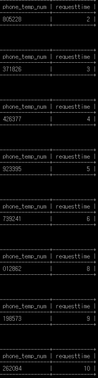 요청 시간/인증번호/요청 회수