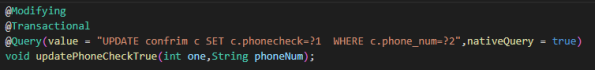 confimDao.updatePhoneCheckTrue(t, phoneCofrimDto.getPhoneNum());