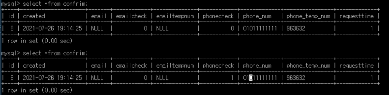phonecheck 0->1로 잘 바뀌 었다