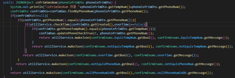 if(confrimDto.getPhoneNum().equals(phoneCofrimDto.getPhoneNum()))