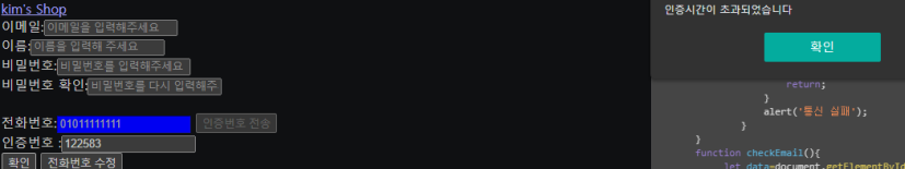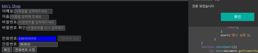 이제 인증번호가 맞는지