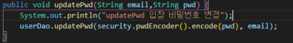 userService.updatePwd(confrimDto.getEmail(),tempPwd);