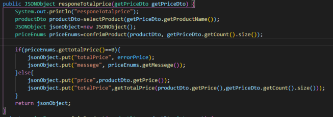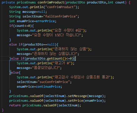 priceEnums priceEnums=confrimProudct(productDto, getPriceDto.getCount().size());