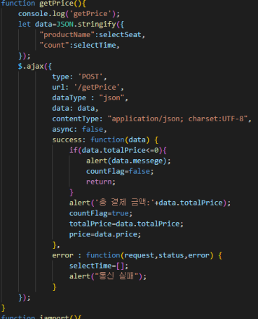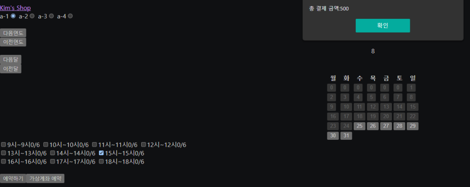 예약하기를 누르면->총가격을 서버에서 받아온다->결제-> 결제 후 서버로 전송