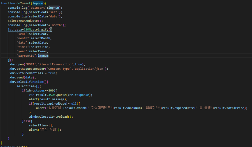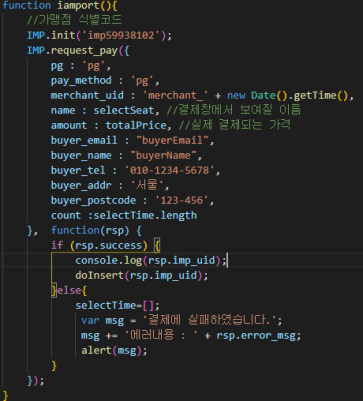 결제 로직 후 doInsert(rsp.imp_uid)로 검증을 하러 간다