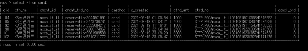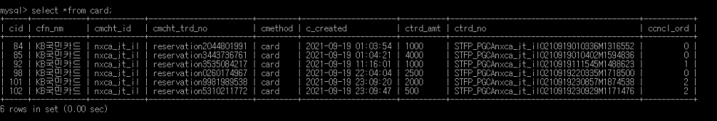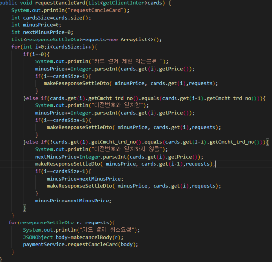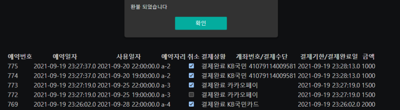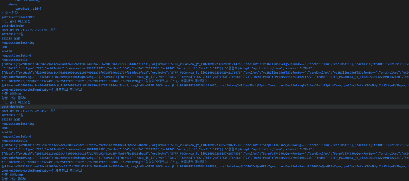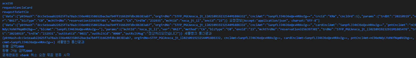 결제 종류별로 순서대로 잘 취소되는 모습이다!