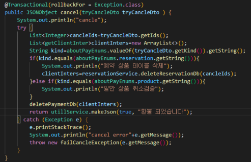 일반 결제 취소 = 카드/카카오페이/가상계좌 입금 후 = 돈이 들어온 후 환불만 해주면 됨