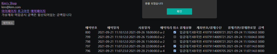 전액 환불/잔액이없는건 채번취만 이뤄진다!