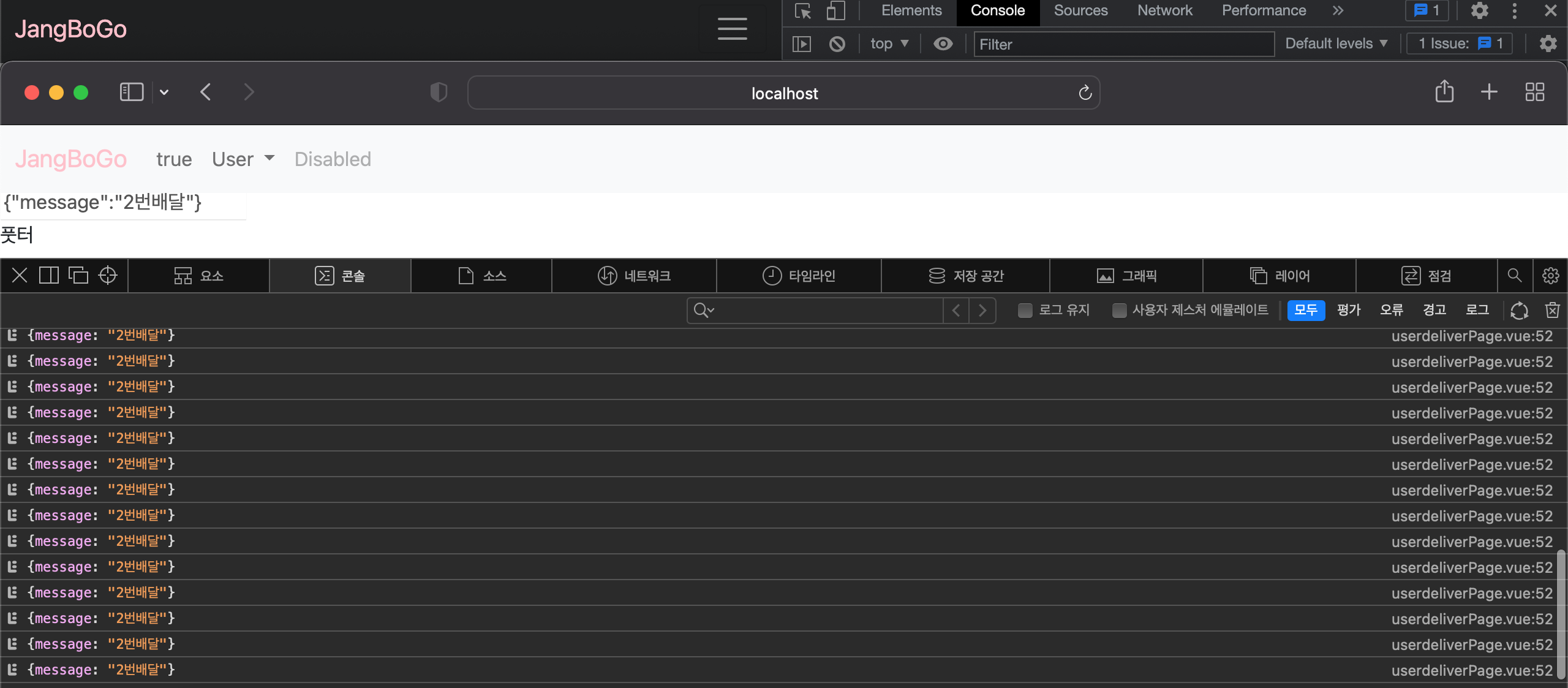 (자바스크립트로 1초에 한 번씩 무언가 전송하는 코드를 써놓았다)