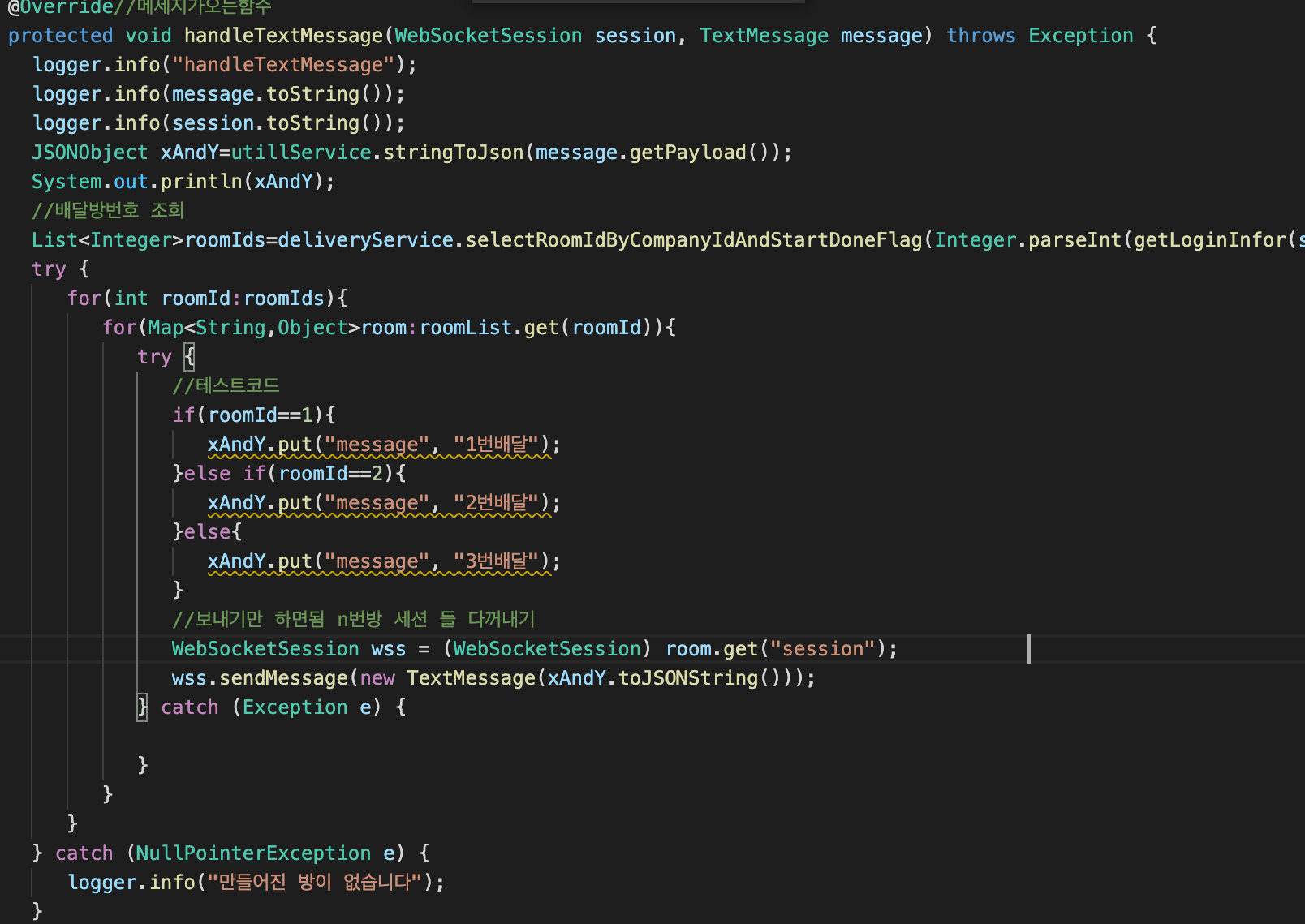 db에서 할당받은 방 번호를 가져온다List<Integer>roomIds=deliveryService.selectRoomIdByUserIdAndFlag(id,intenums.NOT_FLAG.get());