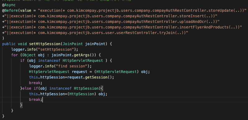 컨트롤러 접근-> 세션 가져오기->비즈니스 로직 끝남->작동