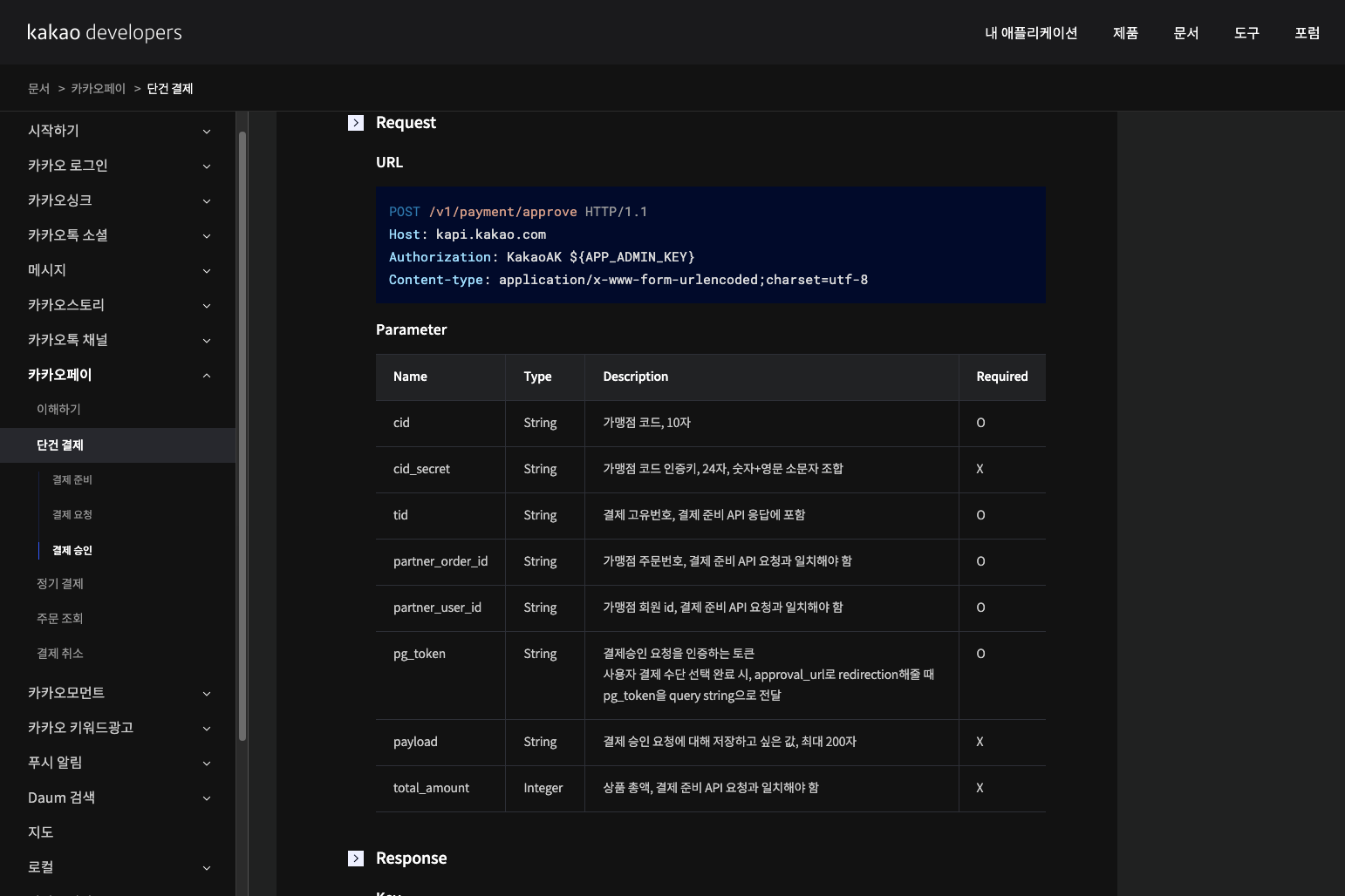 https://developers.kakao.com/docs/latest/ko/kakaopay/single-payment#approve