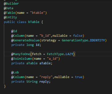 난 이전에 저 oneToMant에 a_id가 아닌 b_id를 적어 놓았다