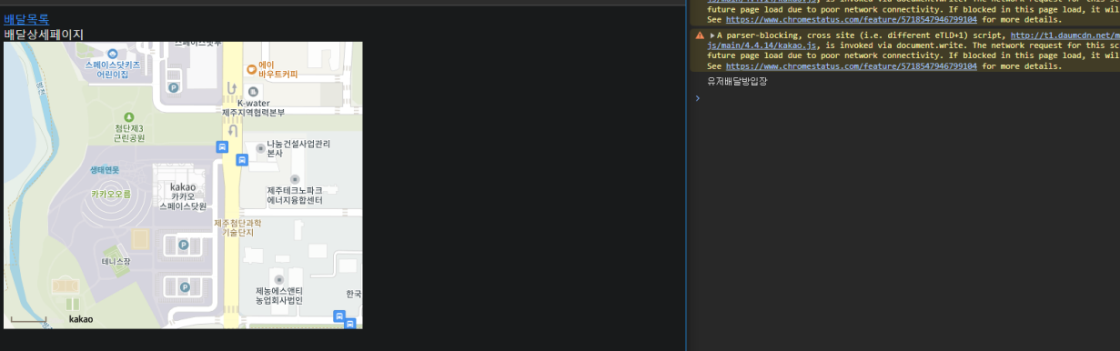 2.고객 페이지 메세지 받는 코드 및 카카오지도 표시 코드 작성