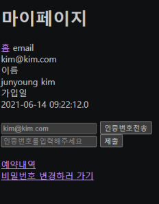 | Spring boot 마이페이지!(3) 이메일 인증 (0) | 2021.06.14 |