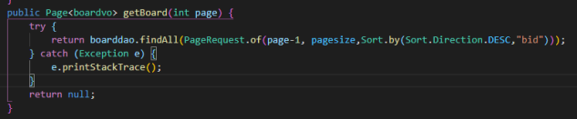 boarddao.findAll(PageRequest.of(page-1, pagesize,Sort.by(Sort.Direction.DESC,"bid")));