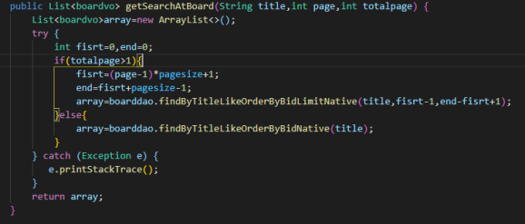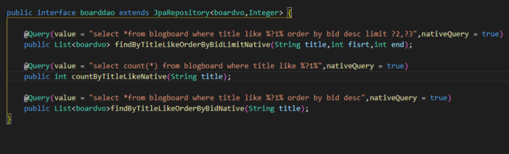 boarddao.findByTitleLikeOrderByBidLimitNative(title,fisrt-1,end-fisrt+1);가고