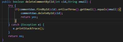 백엔드는 그냥 cid값으로 delete 해주면