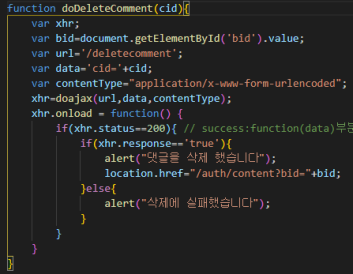 예를 들어 cid값이 70인 댓글 삭제를 누르면
