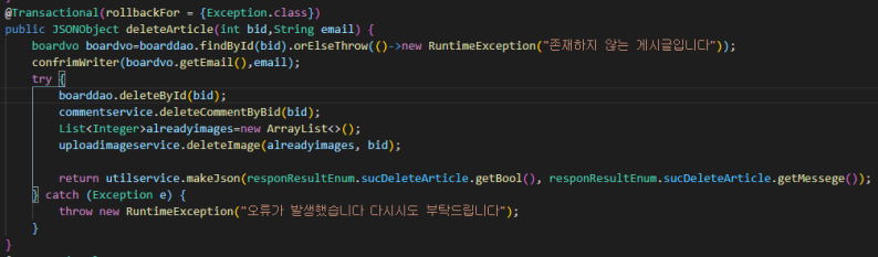 게시글이 삭제될때 게시글만 삭제되면 안 되고
