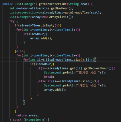 if(alreadyTimes.isEmpty()){예약된 좌석이 없다면