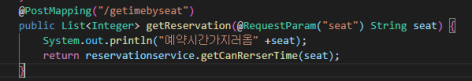 getAlreadyTime 함수 에서 기존 db에 있는 시간을 좌석별로 가져온다