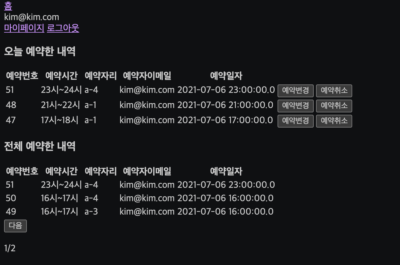 | Springboot 예약내역 페이지 만들기!(1) with thymeleaf (0) | 2021.07.06 |