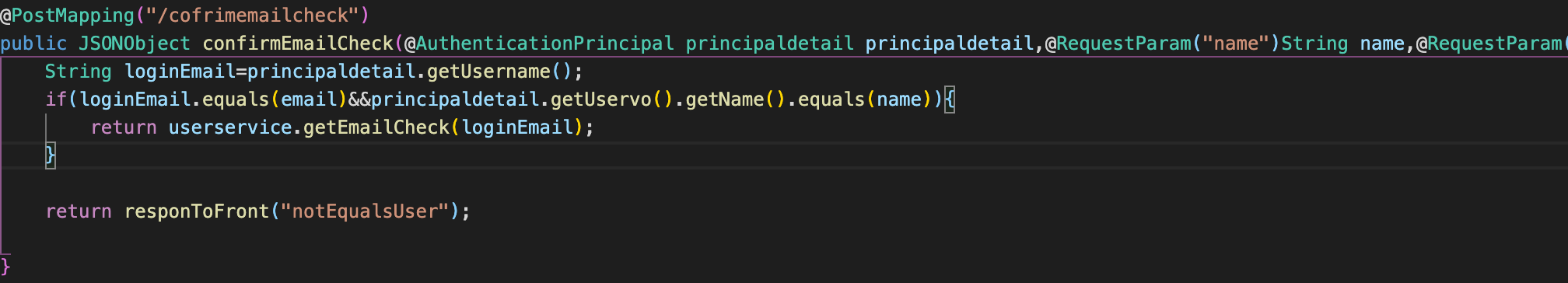 이전에 만들어놓은 userservice.getEmailCheck(loginEmail)