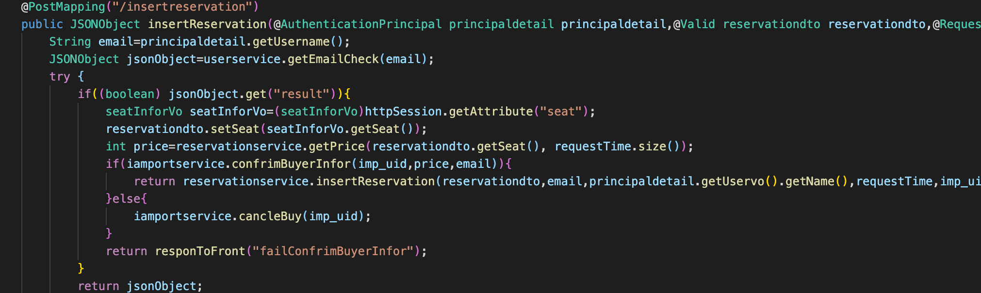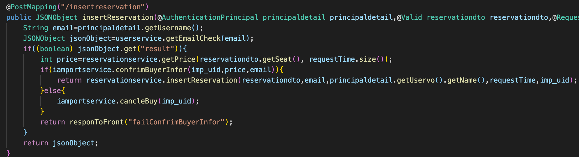 reservationservice.insertReservation(reservationdto,email,principaldetail.getUservo().getName(),requestTime,imp_uid)