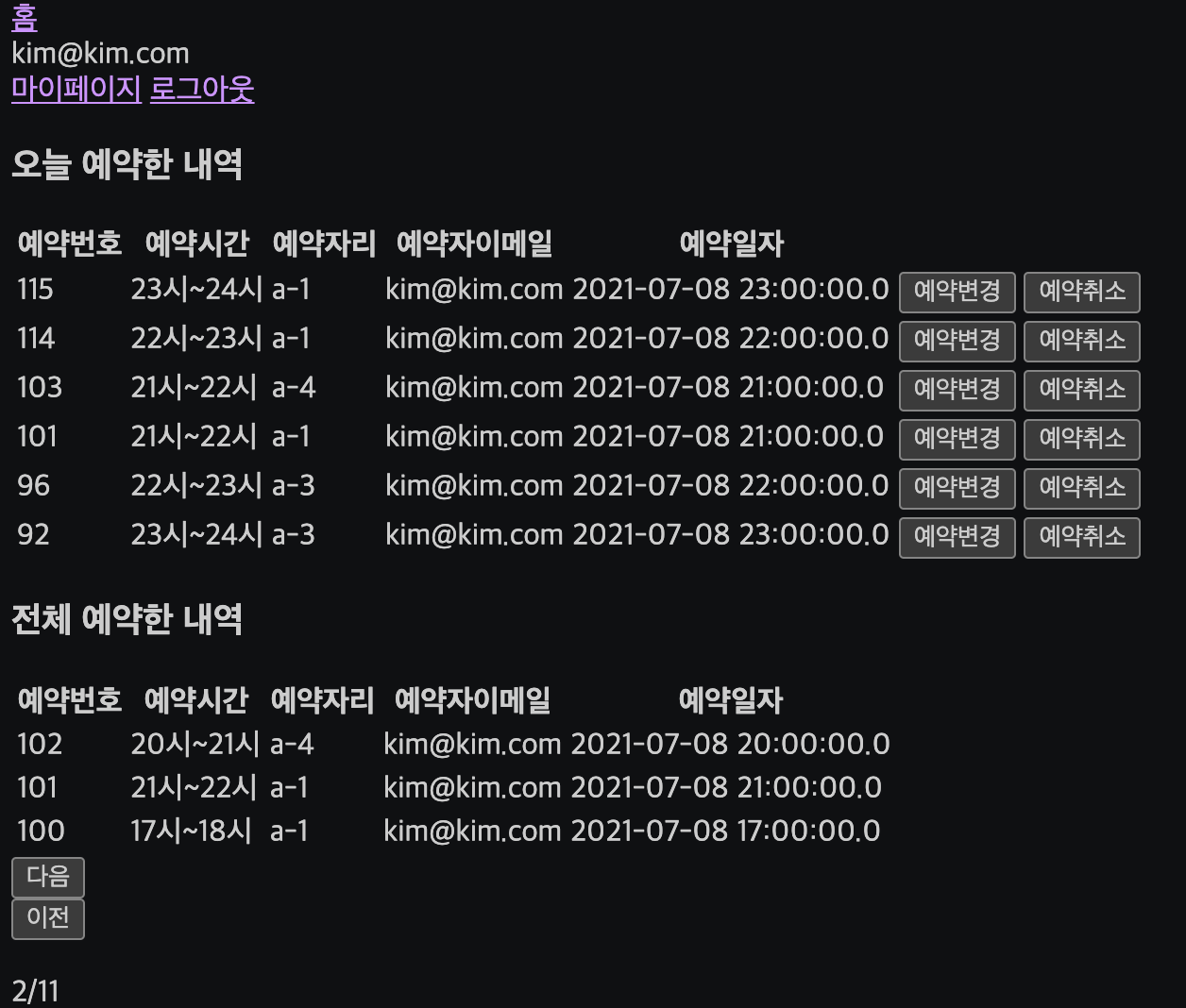 3. 이전 시간의 예약을 억지로 요청했다 환불되었다