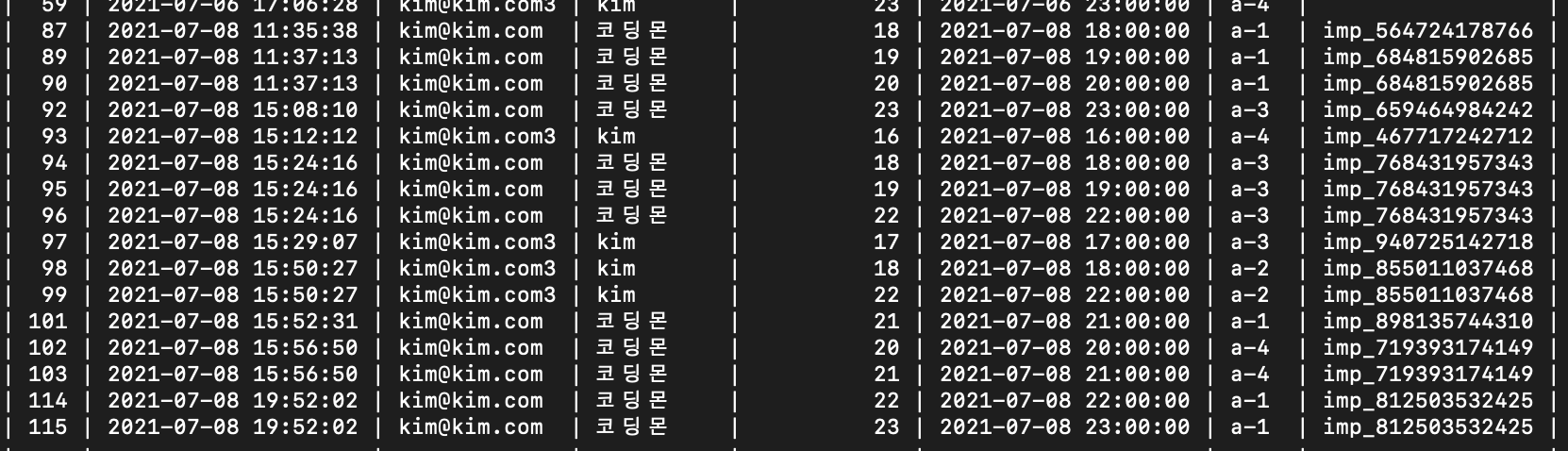 4. 이미 예약이 있는 시간을 억지로 요청했다 환불되었다