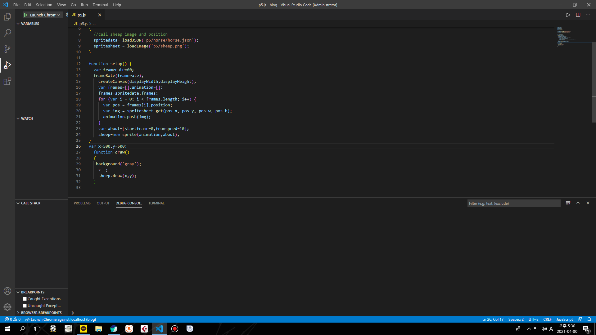 | p5js로 인터렉티브 흉내내기 (0) | 2021.04.22 |