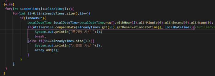 비교를 해서 예약 가능 시간을
