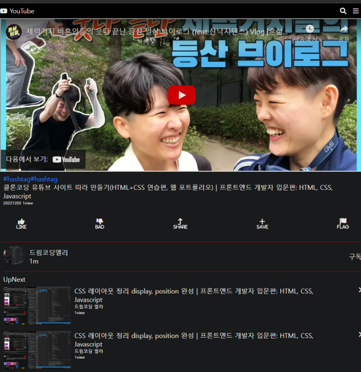 https://www.youtube.com/watch?v=67stn7Pu7s4&t=144s https://github.com/novb1492/study-css/blob/youtube/1.html GitHub - novb1492/study-css Contribute to novb1492/study-css development by creating an account on GitHub. github.com 글꼴/색보다는 레이아웃 위주로 완성했다 예전에 학원에서 javafx할때 레이아웃에 대해 배웠는데 그때는 이거 왜 배움? 생각 했지만 먼 훗날 쓸날이 있겠지 했다 그리고 한참 까먹고 있다 html css로 레이아웃 잡는데 큰도움이 되었다