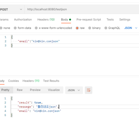 이제 spring에서 json을 프런트로 주는걸 아주 간단하게 해볼건데 왜냐면 현재 프로젝트는 실패/성공만 boolean으로 주고 있다 프로젝트 막바지가 되면 사용자가 실패를 하더라도 xx가 맞지 않습니다 혹은 글자 수를 초과하였습니다 등 여러 상태 메시지를 던져 줘야 한다 두 가지 방법이 있는 거 같은데 JSONObject를 사용해서도 json을 던질 수 있는데 map을 사용해서 던질 수도 있다고 한다 jsonObject Map 결과를 보면 제대로 나온다