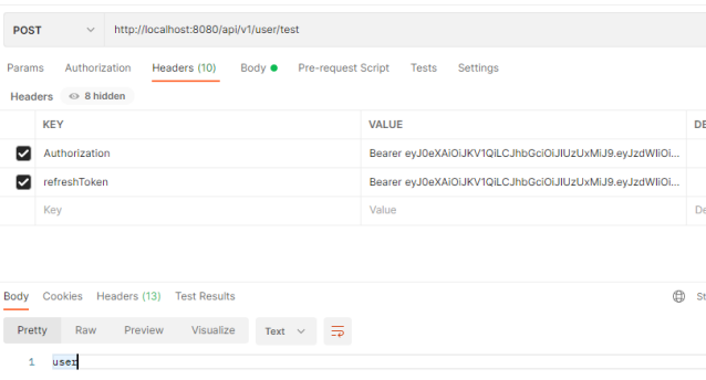 1.jwt서비스에 토큰 오픈 코드 작성 public String getValue(String jwtToken){ try { // JWT 검증을 위한 알고리즘 설정 Algorithm algorithm = Algorithm.HMAC512(jwtSecret); // JWT 검증기 생성 JWTVerifier verifier = JWT.require(algorithm).build(); return verifier.verify(jwtToken).getSubject(); } catch (Exception e) { // 토큰이 유효하지 않거나 디코딩에 실패한 경우 e.printStackTrace(); log.error("토큰이 유요하지 않습니다"); return null; } } 2.인증필터 작성 @Override p..
