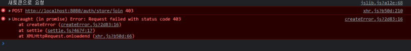 상점 등록 페이지를 만들고 있었다 상점 등록은 회사/어드민만 권한을 가지고 있어야 한다 따라서 시큐리티에 설정을 추가해주었다 .authorizeRequests().antMatchers("/auth/store/**").access("hasRole('ROLE_COMPANY') or hasRole('ROLE_ADMIN')") 편리하게 권한을 체크해준다 테스트 ROLE_USER일 때 ROLE_COMPANY일 때 로직을 잘 타다가 조건대로 에러를 잘 발생해준다! 주의할 점 권한은 대문자로 해야 한다